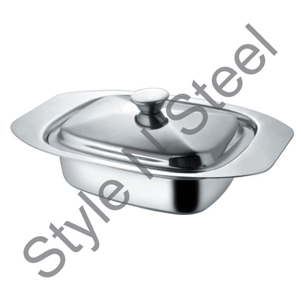 ภาชนะเก็บเนยสแตนเลสสตีลแบบพรีเมี่ยมพร้อมฝาปิดอุปกรณ์เก็บชีสโลหะแบบพรีเมี่ยม