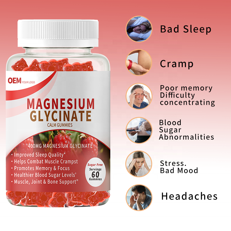 กัมมี่แมกนีเซียมไกลซิเนตยี่ห้อส่วนตัวขายดี ช่วยดูดซึมได้ดี บรรเทาความเครียด ช่วยให้นอนหลับ ผลิตภัณฑ์เสริมอาหารจากธรรมชาติ