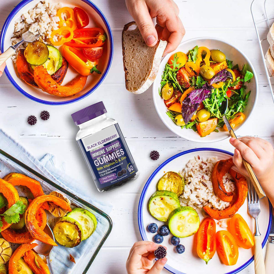 Gummies Elderberry ผลไม้ธรรมชาติ,สินค้าตราห้างสังกะสีออร์แกนิคสำหรับเด็กและผู้ใหญ่