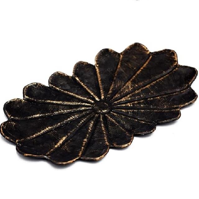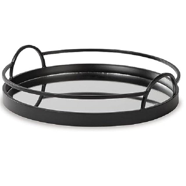 สินค้าขายดีถาดเสิร์ฟอาหารทรงกลมสีดํามีสไตล์เมทัลลิกพร้อมจานตกแต่งโต๊ะสําเร็จรูปคุณภาพสูง