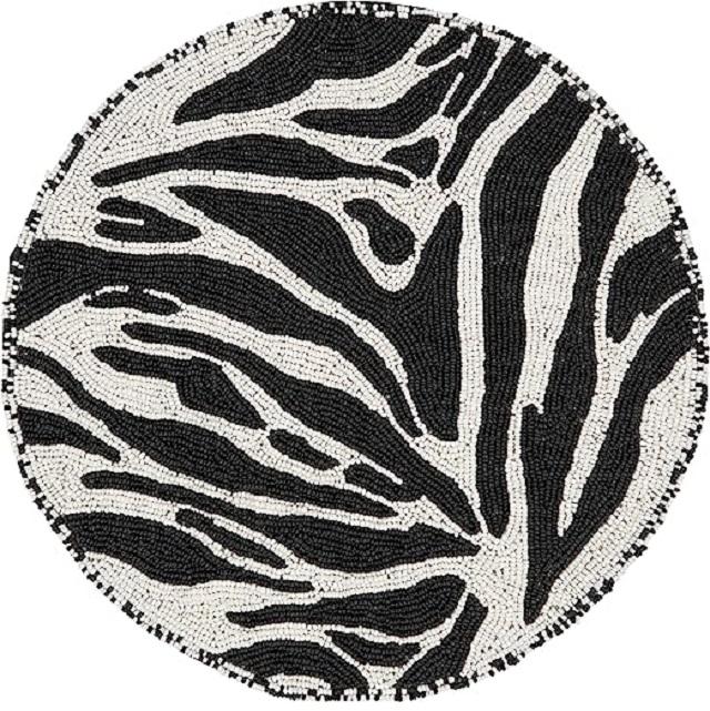 แผ่นรองจานทรงกลมพร้อมลูกปัดโครงสร้างม้าลายแผ่นรองจานสำหรับรับประทานอาหารในบ้านแผ่นปูผลิตภัณฑ์เครื่องใช้ในครัว