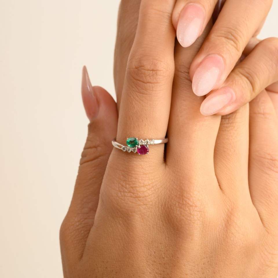 สินค้าขายดีแหวนบายพาสเพชรและมรกตทับทิมธรรมชาติชั้นดีคลาสสิกในเครื่องประดับแฮนด์เมดทองขาว14K