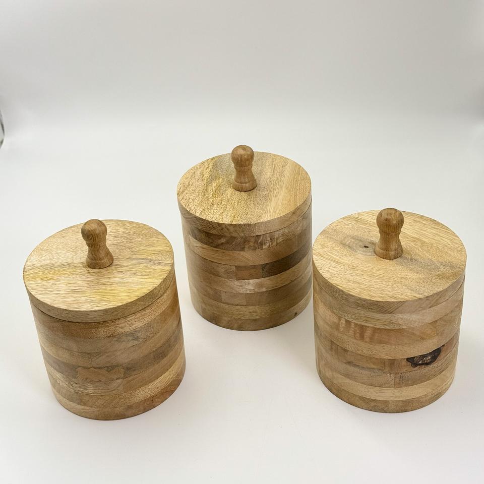 สินค้าขายดี กล่องเก็บของทรงกลมไม้เคลือบผิวธรรมชาติ ขนาดใหญ่ สำหรับเก็บกาแฟ น้ำตาล เครื่องเทศ แป้ง และของใช้ในครัว