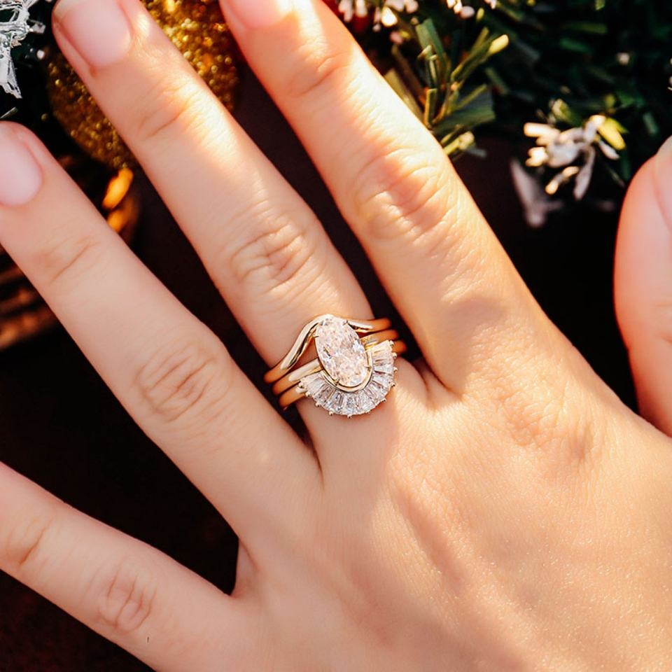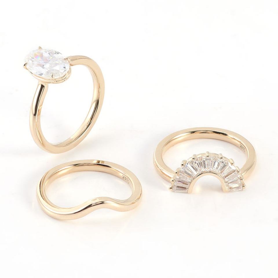แหวนขายดี แหวนซ้อนกันได้ ทอง 14k เพชรโมอิสซาไนต์ DEF VVS แหวนหนาประดับเพชร แหวนใหญ่สำหรับผู้หญิง ชุดแหวนหมั้น