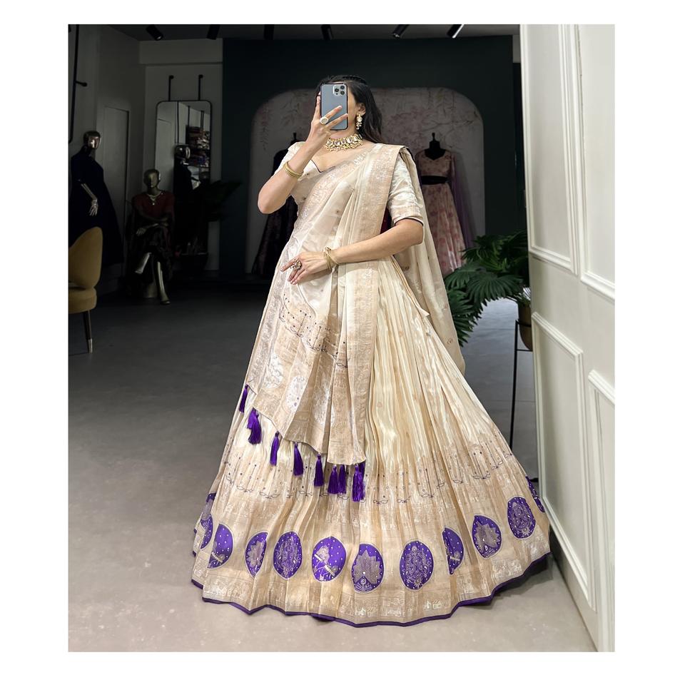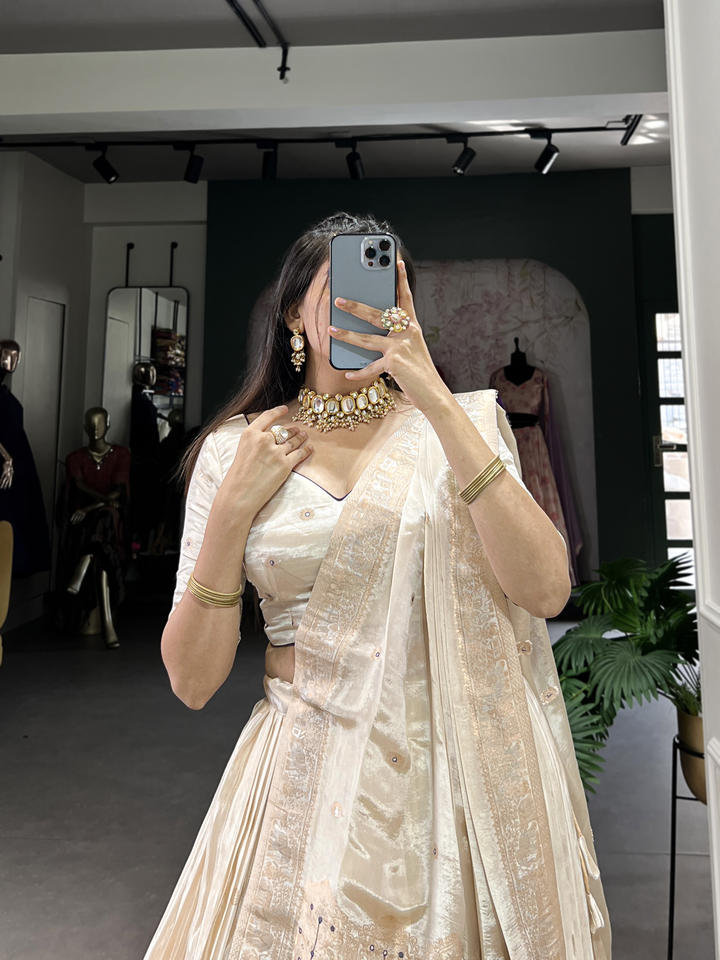 Hot Selling Pure Shimmer Stitched Lehenga with Mirror Beads Hand Work Unstitched Blouse Dupatta for Party Wedding Festive Wear