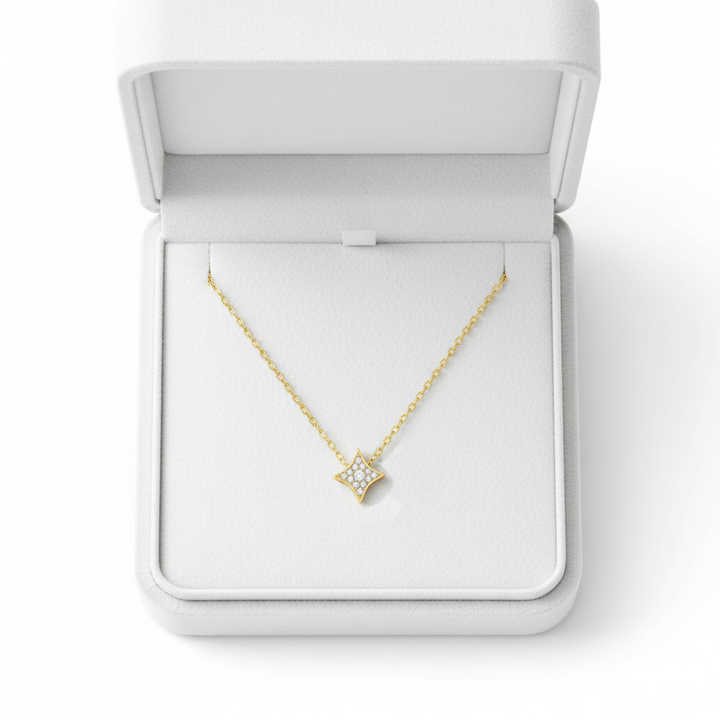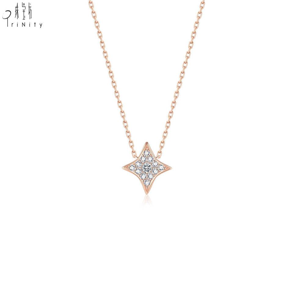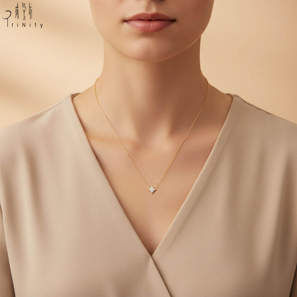 จี้รูปดาวสี่เหลี่ยมยอดนิยม เครื่องประดับทองคำแท้ 18K ประดับเพชรแท้ธรรมชาติ สร้อยคอเส้นเล็ก ของขวัญสำหรับงานปาร์ตี้สำหรับผู้หญิง