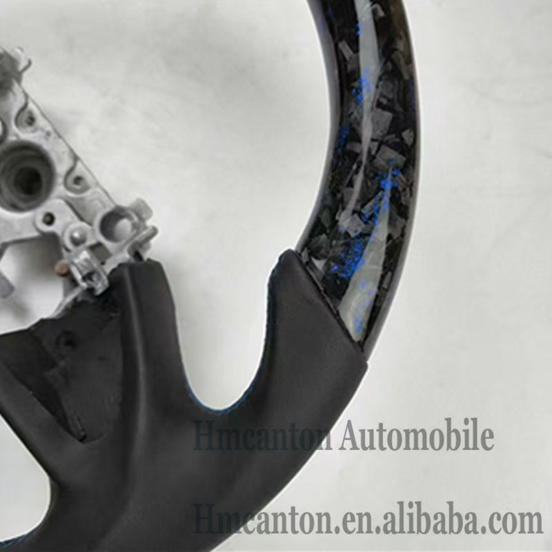 พวงมาลัยรถยนต์อินฟินิตี้ Q50 หนังแท้เย็บด้ายสีน้ำเงิน คาร์บอนไฟเบอร์ฟอร์จคุณภาพสูง ขายดี