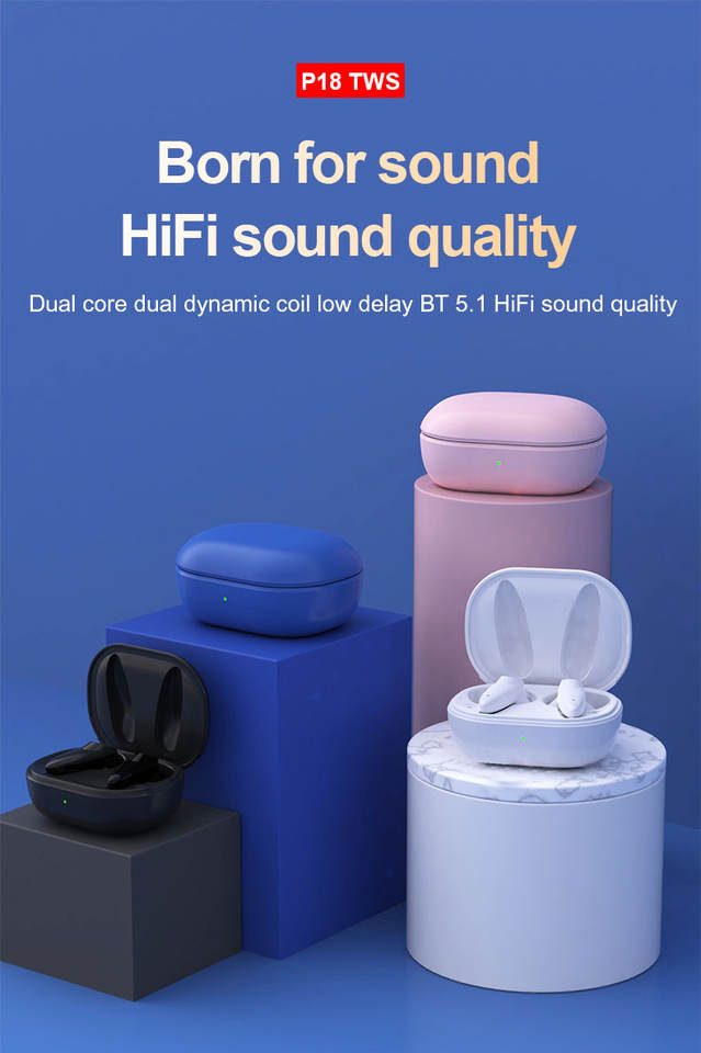 ร้อนขายที่มีคุณภาพ P18หูฟังซูเปอร์เบสอุปกรณ์เสริมสัมผัสแบบพกพาชาร์จต่ำแฝง Tws หูฟังไร้สาย