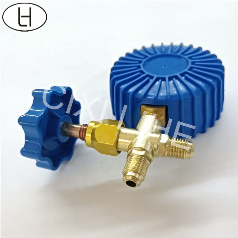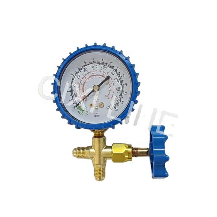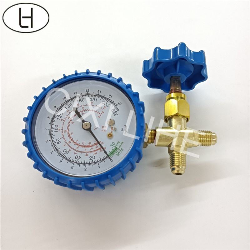 เกจวัดความดันพร้อมวาล์วท่อร่วม R32 R410A R22เครื่องทำความเย็นทองเหลือง R134a เดียว HVAC