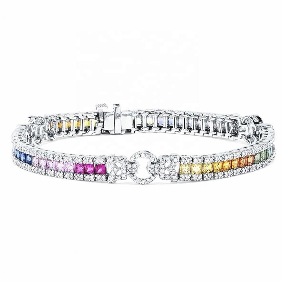 Hot Selling Rainbow Multi-Color Cubic Zirconia Tennis Bracelet for Women Rhodium & Gold Plated Gift