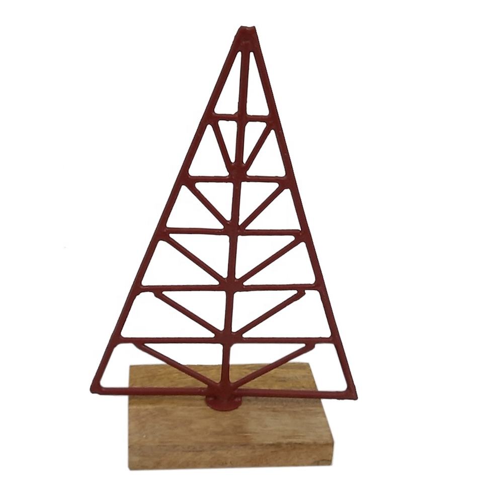 ร้อนขายฉูดฉาดสีแดงเหล็กและไม้คริสต์มาสตกแต่ง X-Mas ต้นไม้ที่มีฐานสี่เหลี่ยมที่ทำด้วยมือ