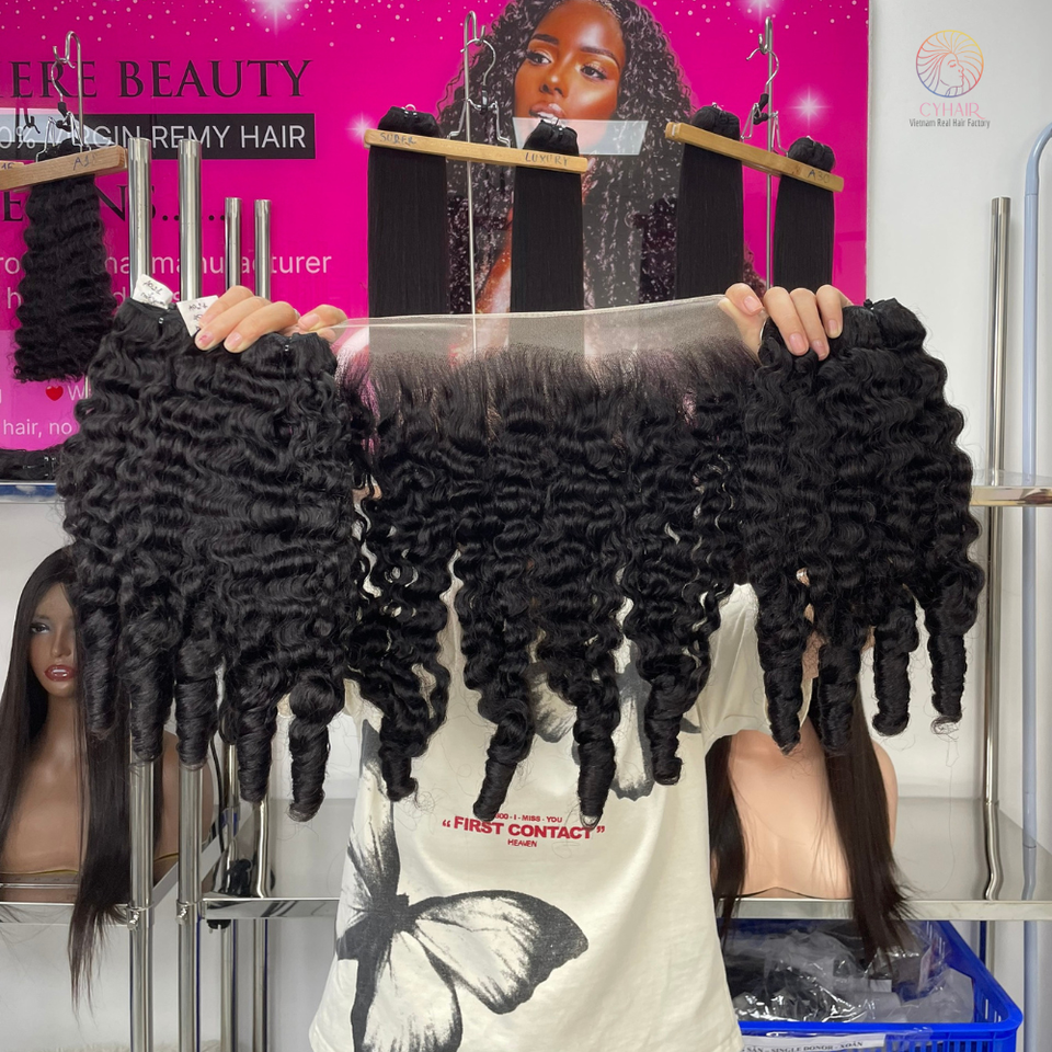 Hot Selling 100% Human Hair Bundles Best Quality Raw Vietnamese Kinky Curly Hair 18 Inches 13X6 Natural Wave Style