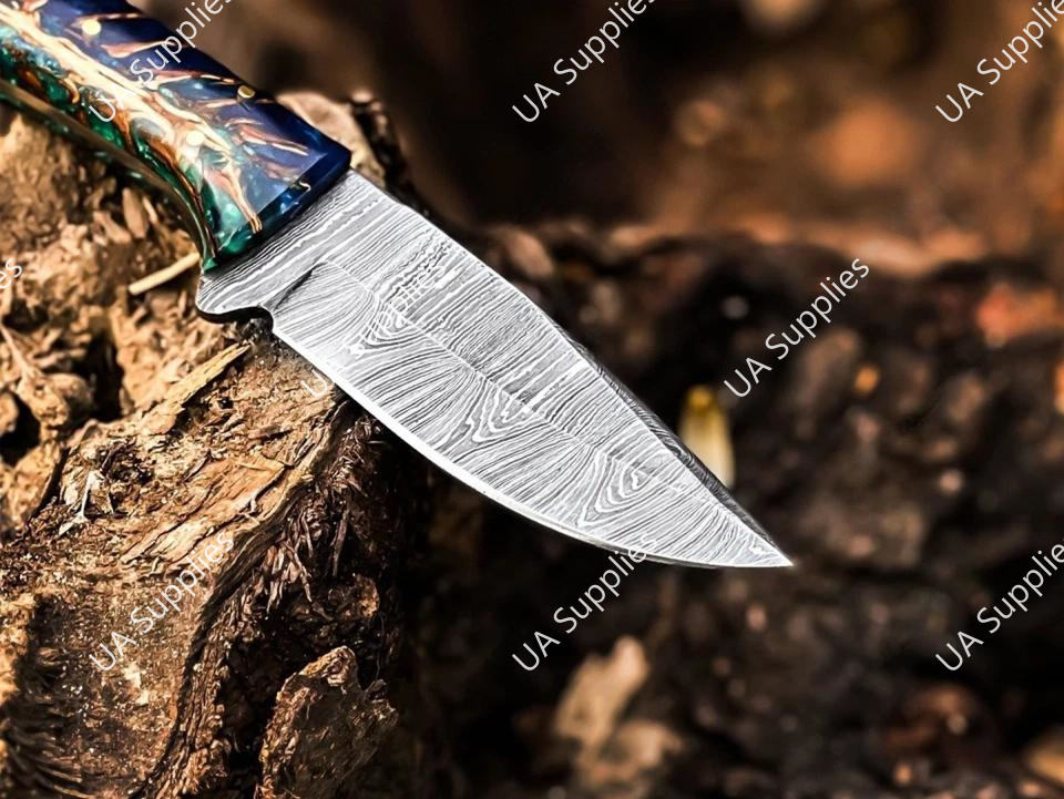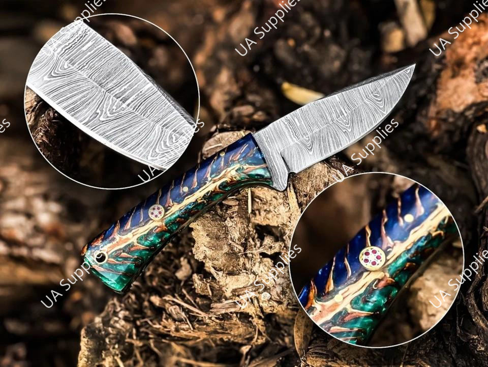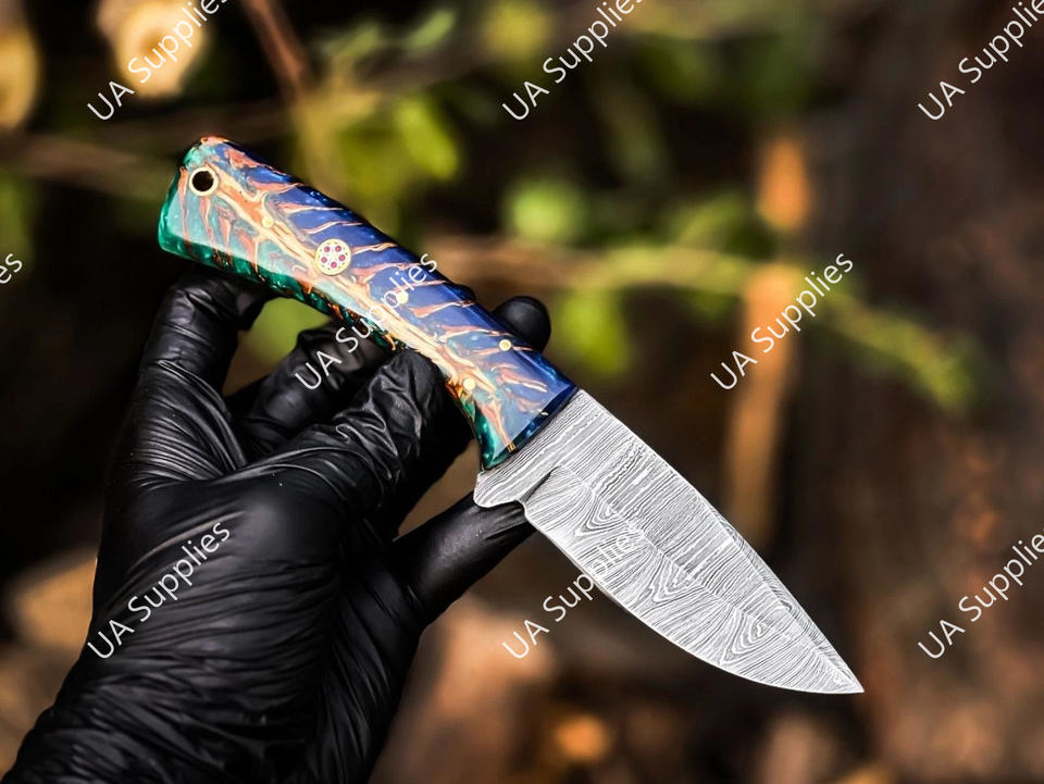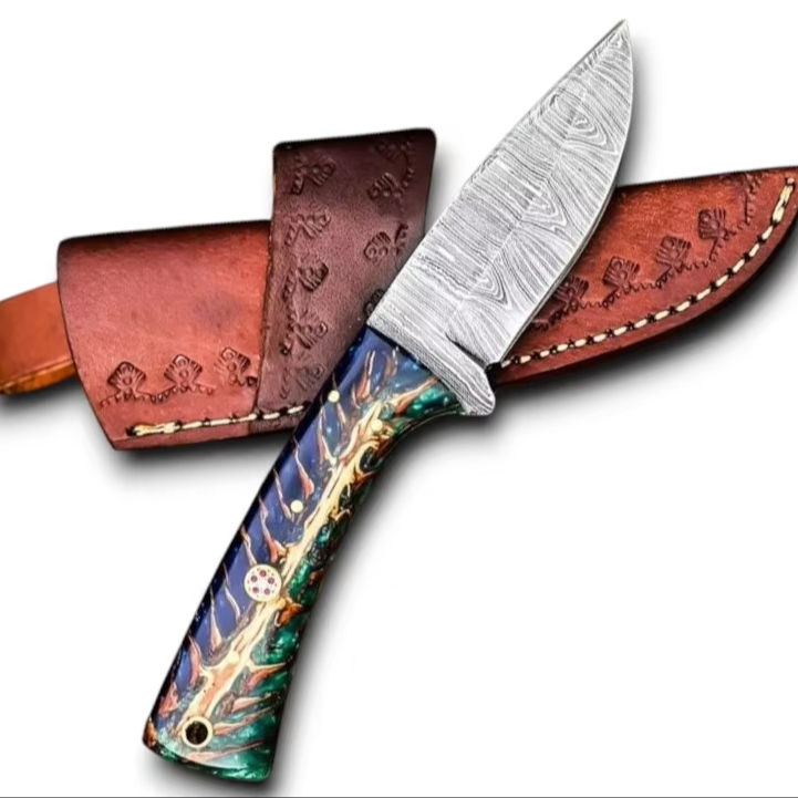 มีด EDC ใบมีดเหล็กดามัสกัสคมกริบ ด้ามจับรูปทรงกรวยสน จับถนัดมือ ขนาด 8 นิ้ว ขายดี