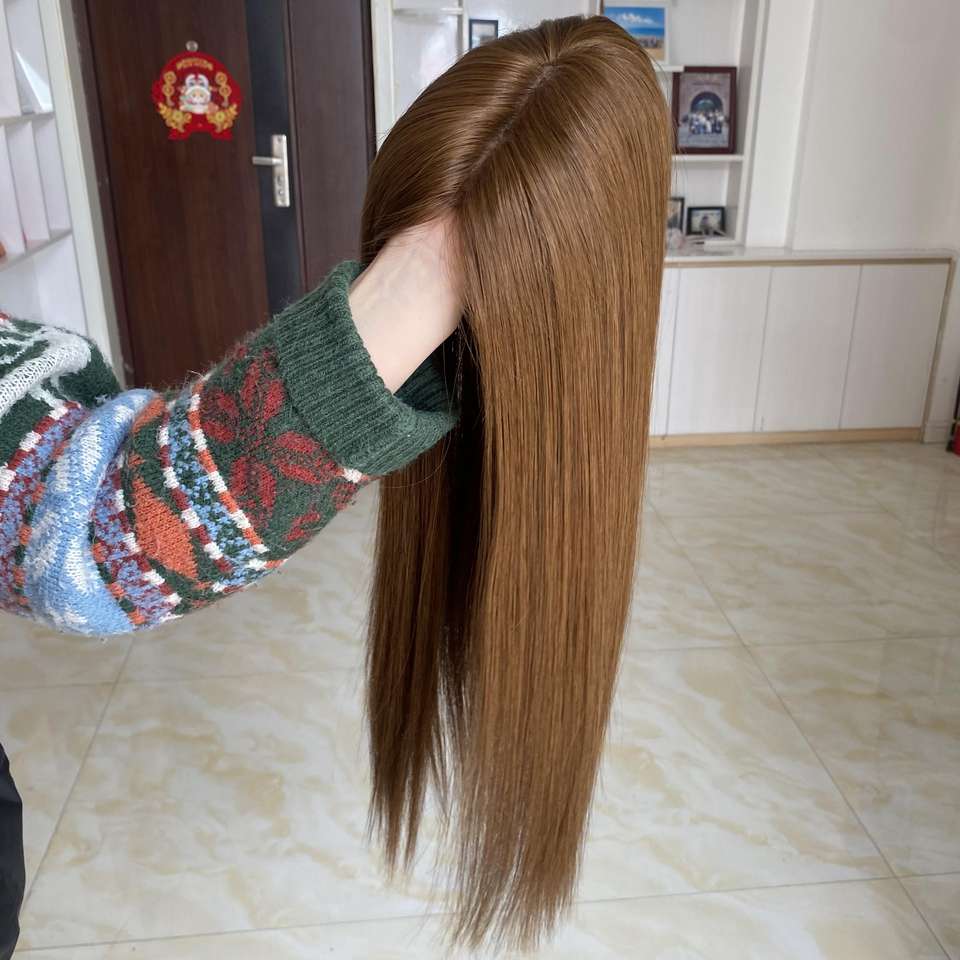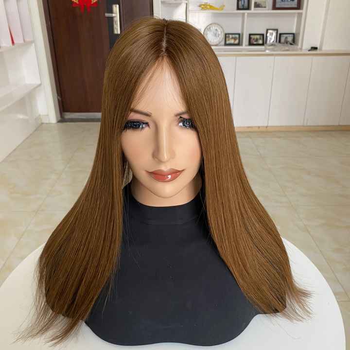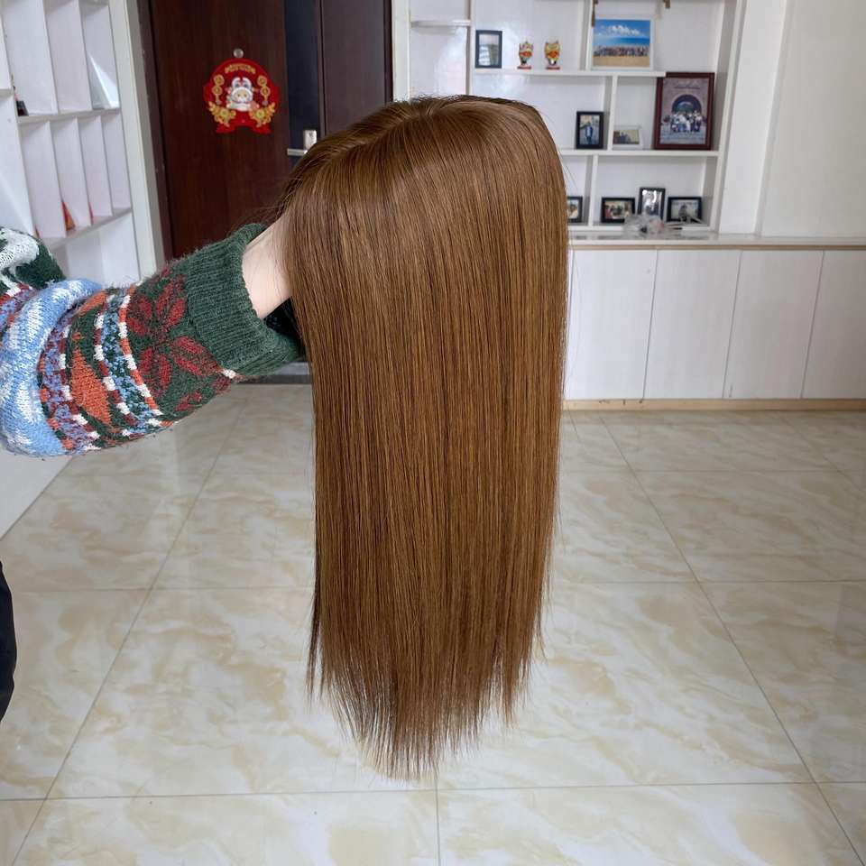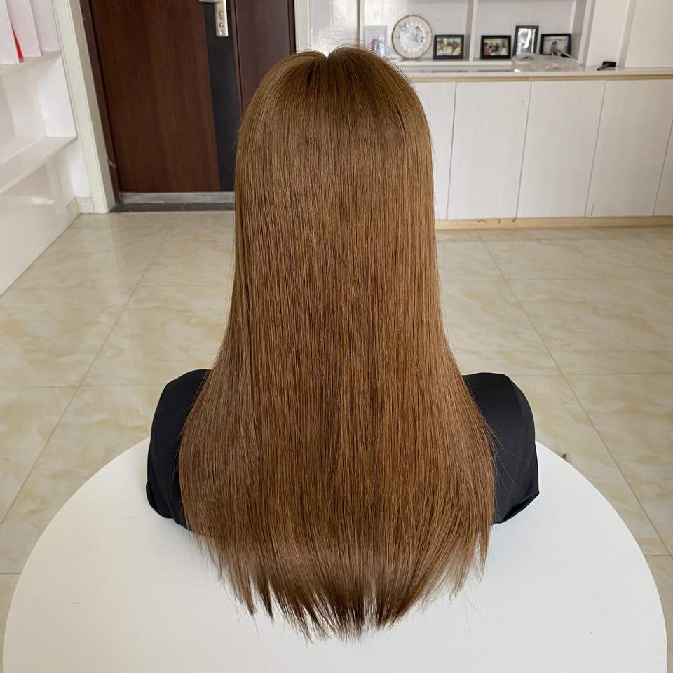 สินค้าขายดี พร้อมส่ง HT-014 สีน้ำตาลอ่อน วิกผมแท้จากรัสเซีย แบบตรง ฐานไหม ผิวบางเป็นธรรมชาติ