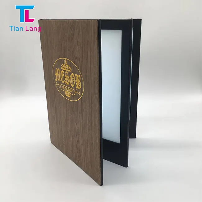 ที่ใส่เมนู LED แบบชาร์จไฟได้3หน้ามีไฟ LED backlit สำหรับงานบาร์โรงแรมทำจากหนัง