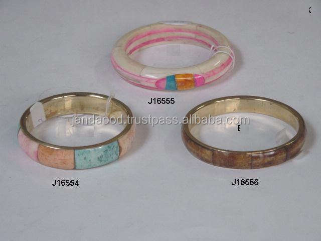 กำไลฝังกระดูกสีแดงและเขียวสำหรับฝังบนสร้อยข้อมือโมเสกทองเหลืองฐานกระดูกอินเดีย