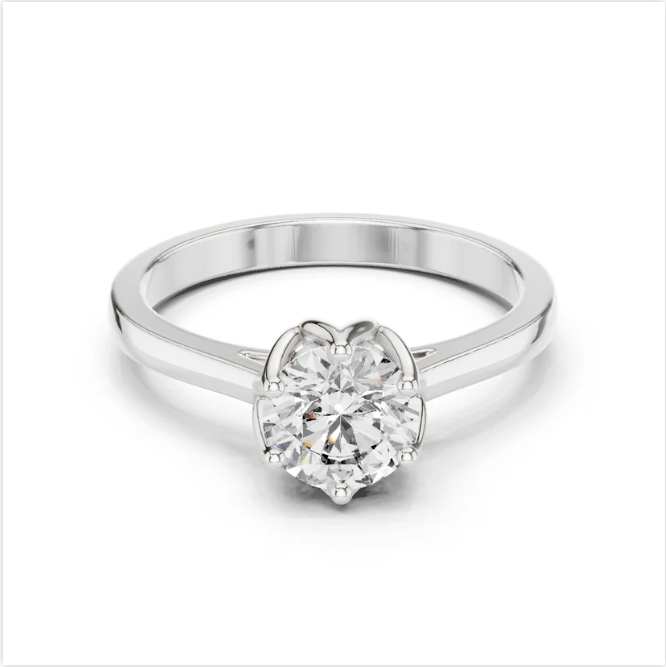 แหวนเพชรทิวลิป6ง่ามสีทองขาวบริสุทธิ์พร้อมหินเจียระไนชั้นยอดสำหรับคอลเลกชันเครื่องประดับระดับพรีเมียมจากอินเดีย
