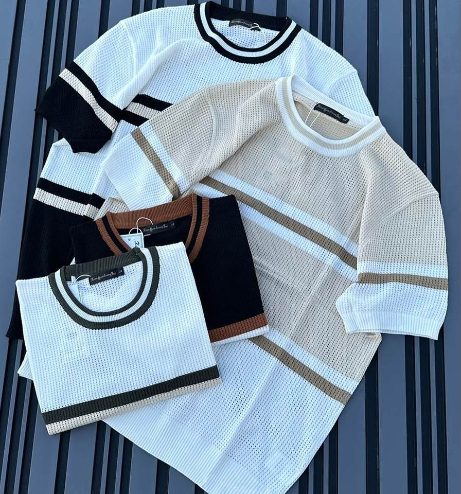 เสื้อยืดคอกลมลายทางสำหรับผู้ชายเสื้อคู่รักระบายอากาศขนาดใหญ่สำหรับฤดูร้อน