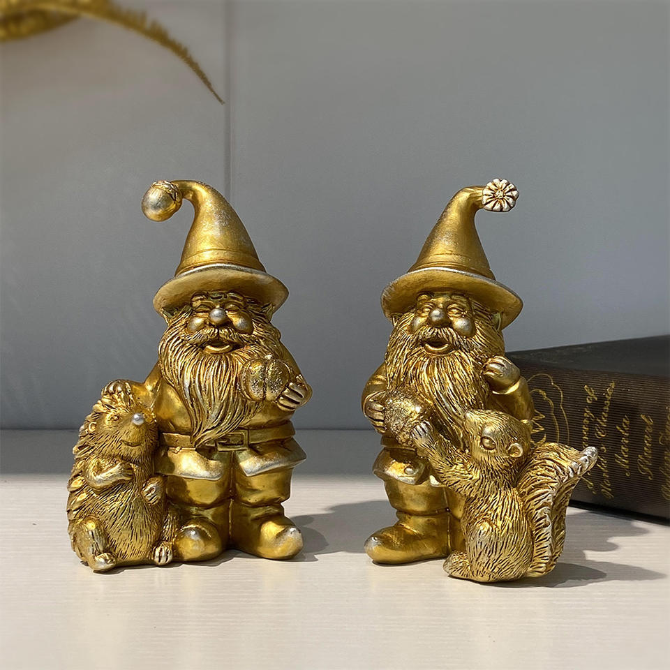 Description:poly resin gnomes with squirrel