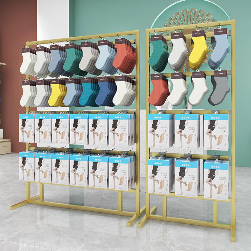 ชั้นวางถุงเท้าแบบตั้งพื้นไม้สองด้านสำหรับร้านค้าปลีก ขายดี