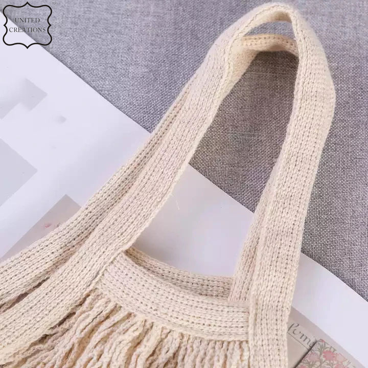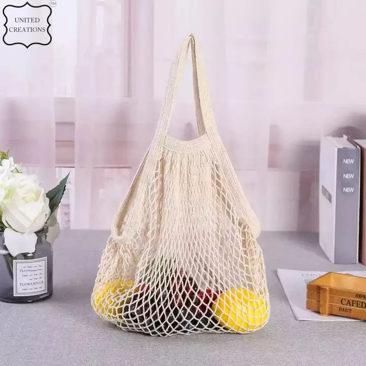 ร้อนขายนํามาใช้ใหม่ผักผลไม้ร้านขายของชําผลิตสิริผ้าฝ้ายตาข่ายสุทธิถุงช้อปปิ้งที่มีด้ามจับยาว