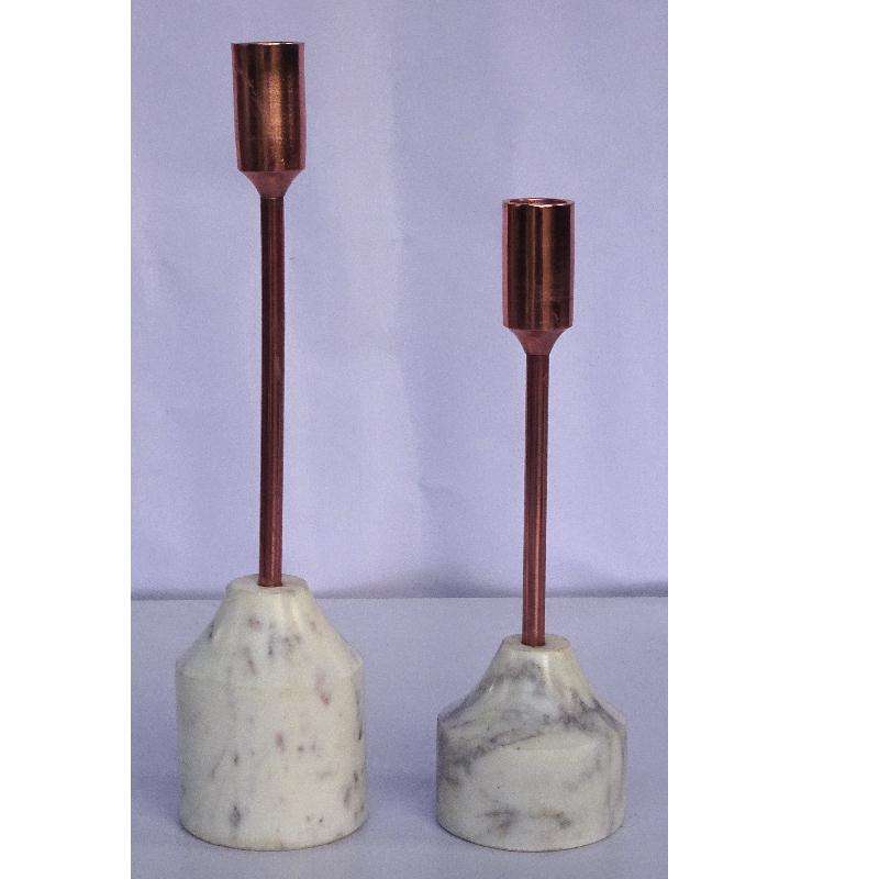 เชิงเทียนรูปทรงกระบอกทำจากหินอ่อนโลหะสีโรสโกลด์เชิงเทียนสำหรับตกแต่งบ้านทำจากโลหะหินอ่อน