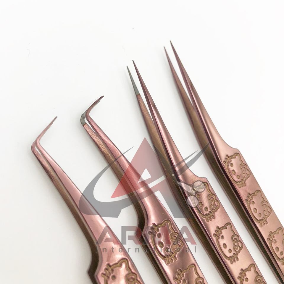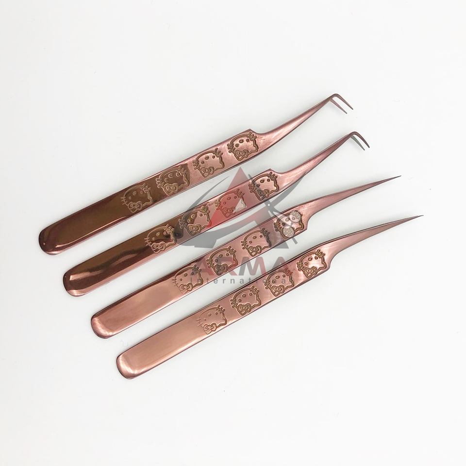 แหนบต่อขนตาแบบฝังสีโรสโกลด์90องศาทำจากสเตนเลสเฮลโลคิตตี้