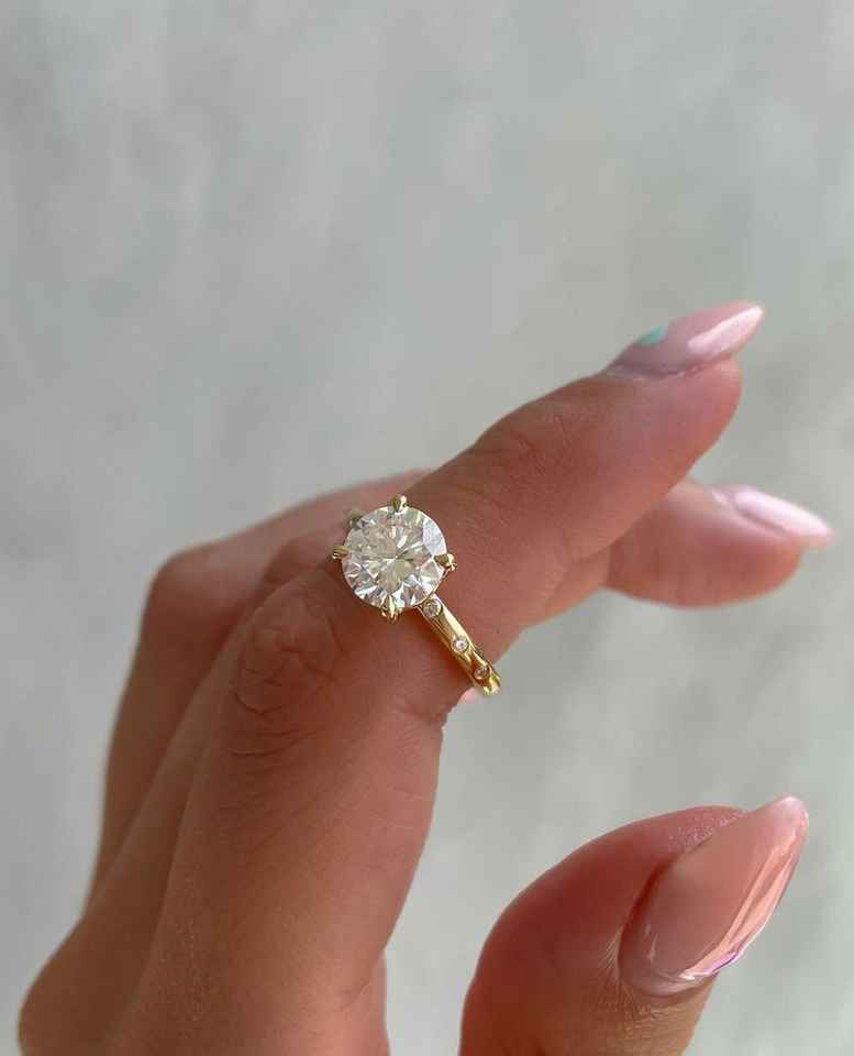 แหวนเพชรทรงกลมเจียระไนแบบบริลเลียนท์ ขายดี แหวนหมั้นเพชรเลี้ยงในห้องปฏิบัติการ ดีไซน์สวยงาม แหวนแต่งงานทองคำแท้ 14K แหวนสัญญา เครื่องประดับชั้นดีสำหรับเธอ