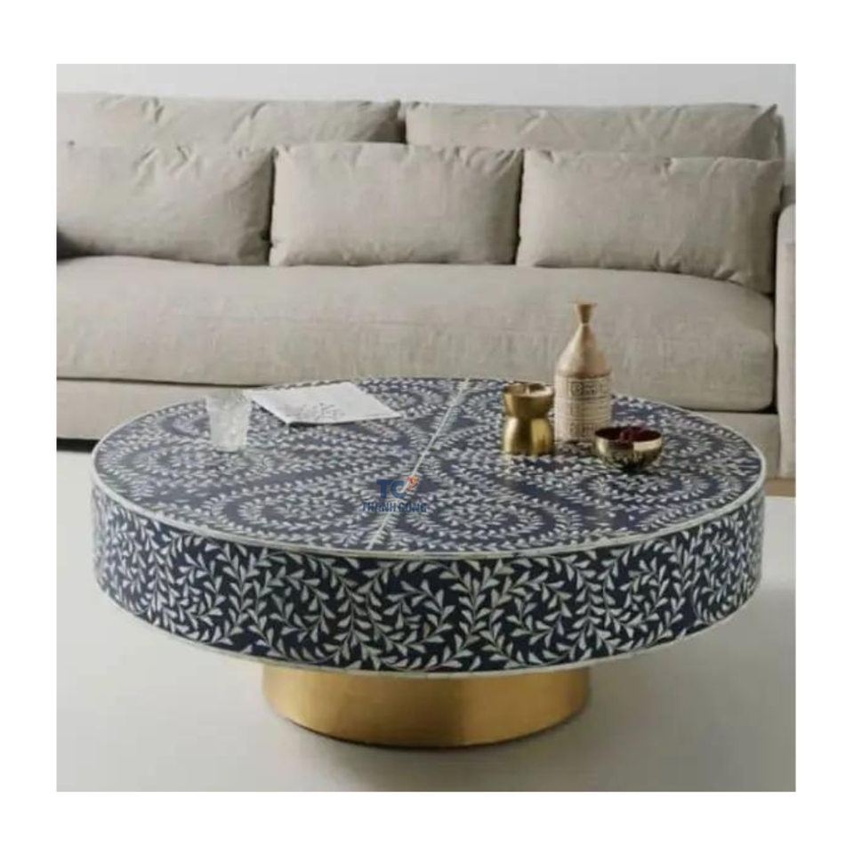 โต๊ะกาแฟทรงกลมสำหรับตกแต่งบ้านโต๊ะกาแฟแบบฝังกระดูกโต๊ะกลางสำหรับห้องนั่งเล่นสำนักงาน