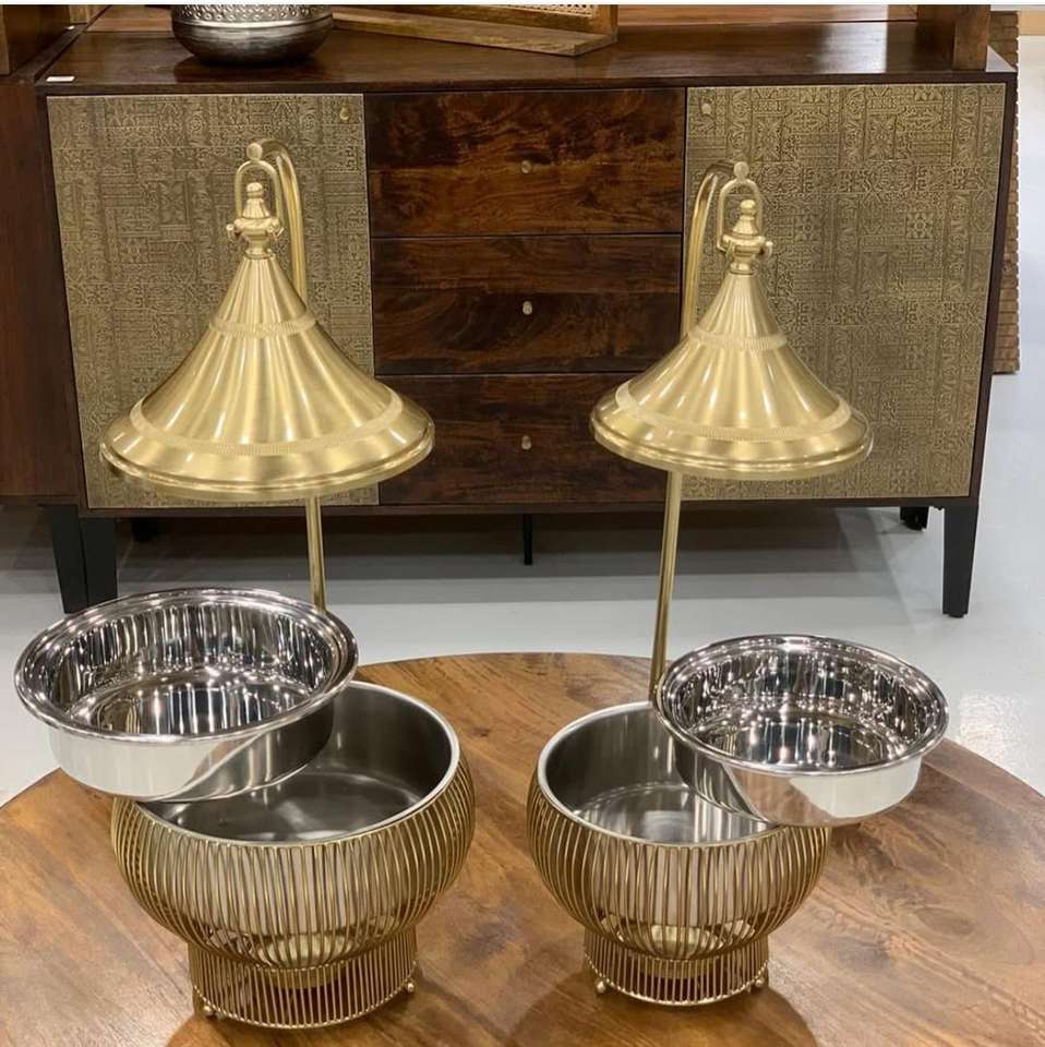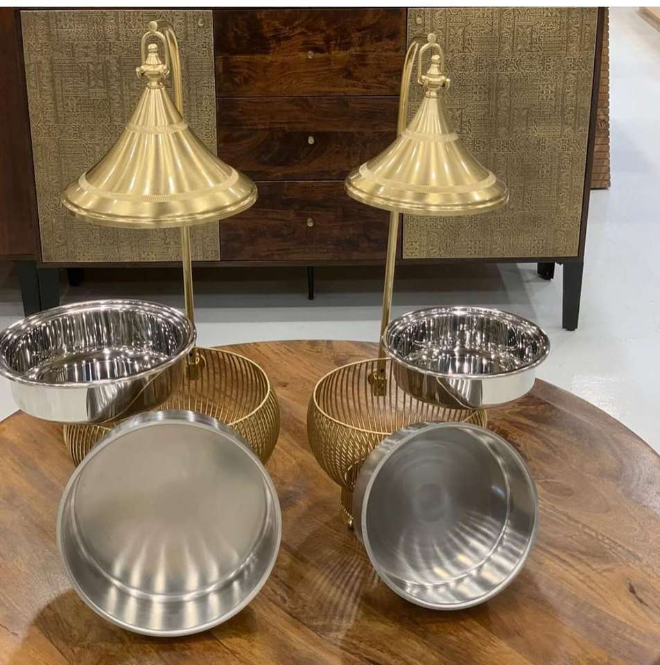 หม้ออุ่นอาหารทรงกลม ดีไซน์ใหม่ สีทอง ทนทาน เหมาะสำหรับบุฟเฟ่ต์
