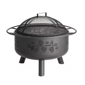 แหวนเหล็กดับเพลิงรูปทรงกลมดีไซน์เรียบง่ายสีดำอุปกรณ์เสริมสำหรับเตาผิงในบ้านโรงแรม