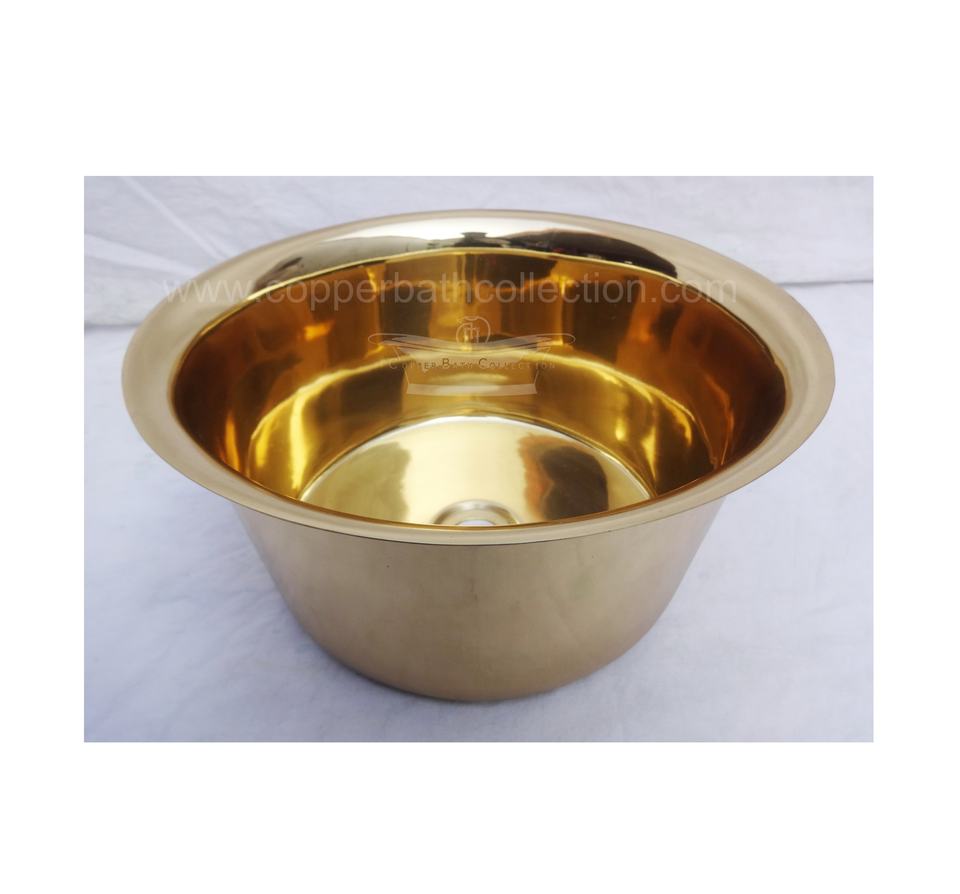 อ่างล้างหน้าทองเหลืองขัดเงาทรงกลมสำหรับห้องน้ำดีไซน์ทันสมัย