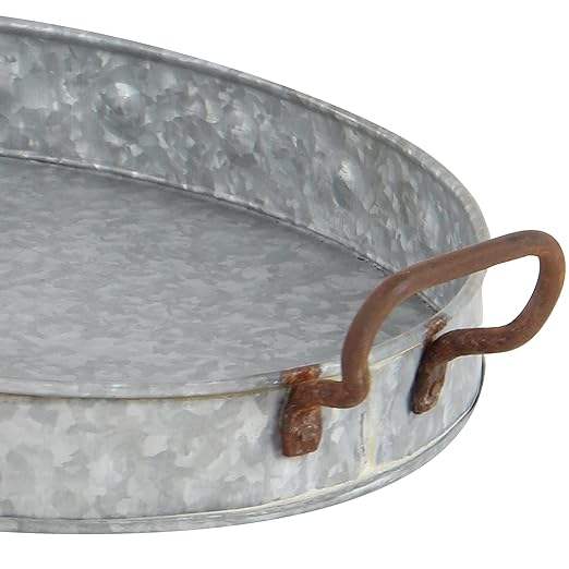 ถาดเสิร์ฟโลหะชุบสังกะสีสไตล์วินเทจสนิมสำหรับบ้านร้านอาหารงานแต่งงานบาร์งานปาร์ตี้