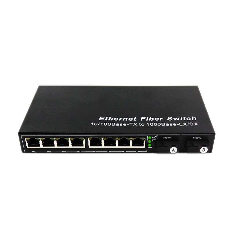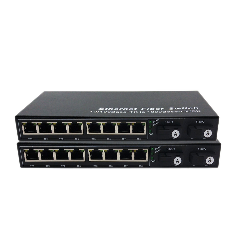 ตัวแปลงสัญญาณ SC Media Converter 10/100M Ethernet Switch 20KM 2 SC +8 RJ45 A/B สำหรับใยแก้วนำแสง ขายดี