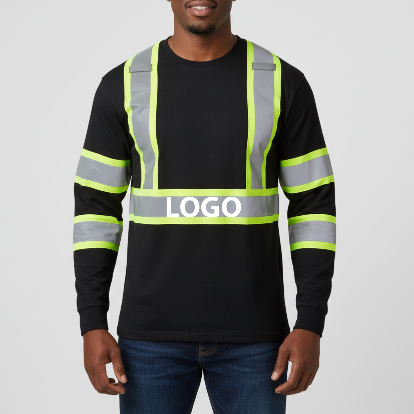เสื้อยืดนิรภัยขายดี 100% โพลีเอสเตอร์ สะท้อนแสงสูง แขนยาว กันน้ำ ไฟ LED ปรับแต่งได้ สำหรับงานรักษาความปลอดภัย