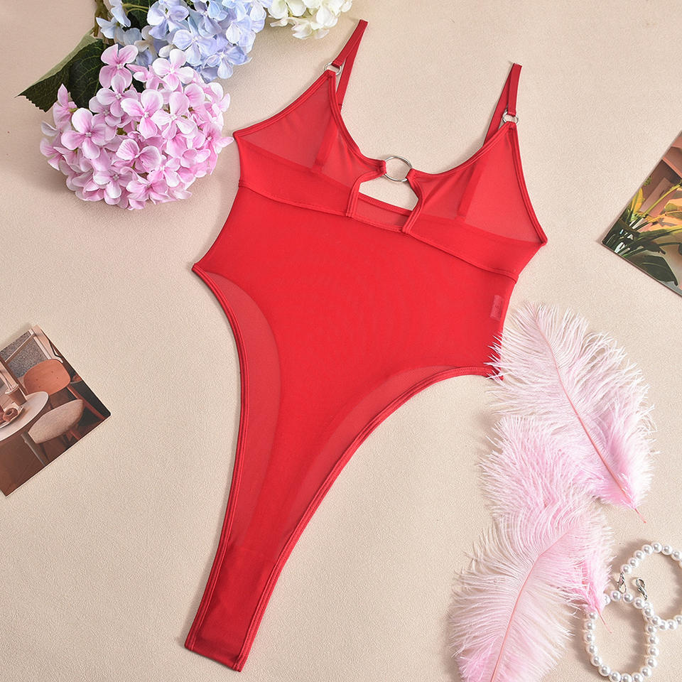 ชุดบอดี้สูทตาข่ายซีทรูขายดี รุ่นใหม่บางเฉียบ พร้อมห่วงเว้าลายฉลุ