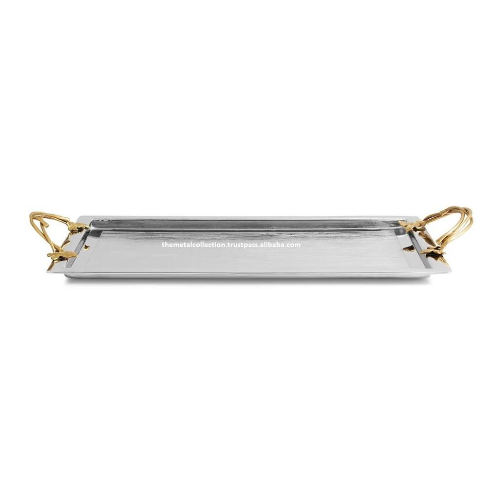 ถาดเสิร์ฟอาหาร,จานสเตนเลสสีเงินที่จับทองเหลืองสีเงินสำหรับบ้านโรงแรมร้านอาหารชากาแฟ