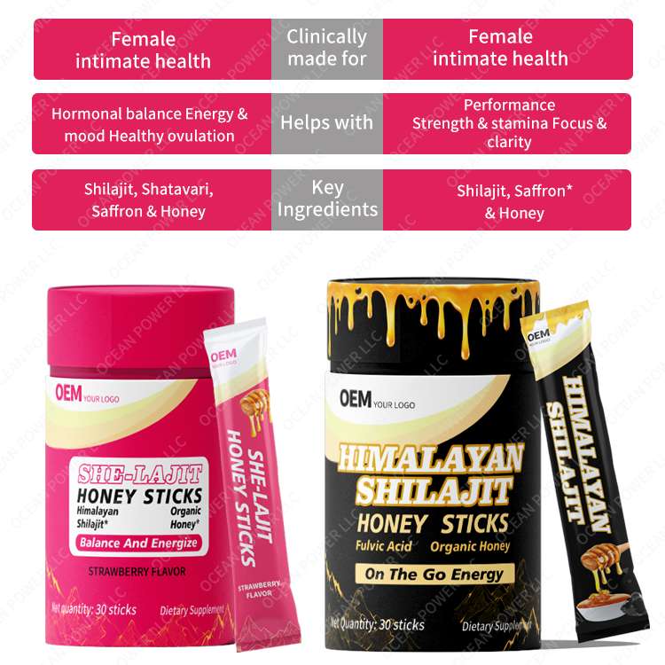 Hot-Selling Shilajit Honey Sticks for Women Strawberry Flavor Pure Himalayan Shilajit With Saffron for Hormonal Balance