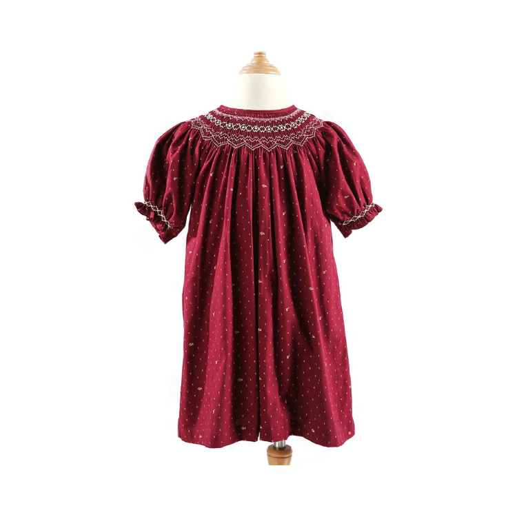 ชุดเดรสผ้าฝ้ายแขนสั้นสำหรับเด็กผู้หญิงชุดเดรสคอกลมลายจุดผลิตจากเวียดนาม