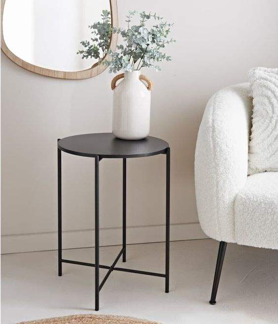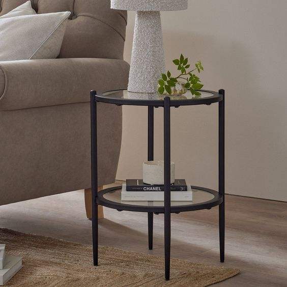 โต๊ะข้างทำจากเหล็กและกระจกมีสีดำและตกแต่งเฟอร์นิเจอร์โลหะขนาดเล็กห้องนั่งเล่น