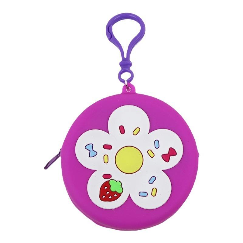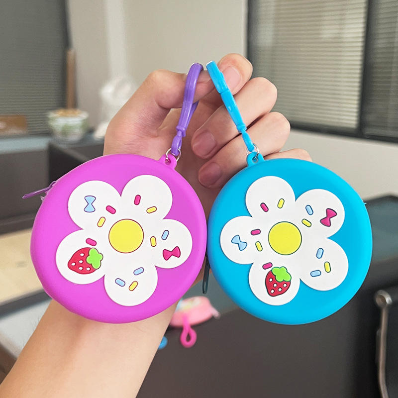 กระเป๋าใส่เหรียญลายการ์ตูนดอกไม้คู่ใส่เหรียญแบบพกพาได้กระเป๋าใส่หูฟังแบบเปิดปิดพวงกุญแจกระเป๋าสตางค์ซิลิโคนไนล่อนแนววินเทจ