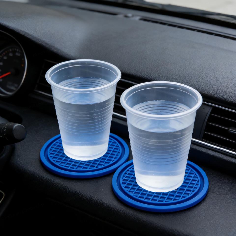 แผ่นรองแก้วซิลิโคนทรงกลมกันลื่นสำหรับรถยนต์ ขายดี ใช้ได้กับที่วางแก้วในรถยนต์ทุกประเภท