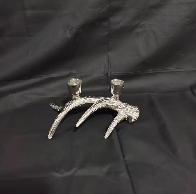 เชิงเทียนอะลูมิเนียมสีเงินขัดเงาแบบสองดวงไฟ ดีไซน์ใหม่รูปทรงเขากวาง สำหรับตกแต่งบ้าน โรงแรม สำหรับเทศกาลคริสต์มาส ขายดี