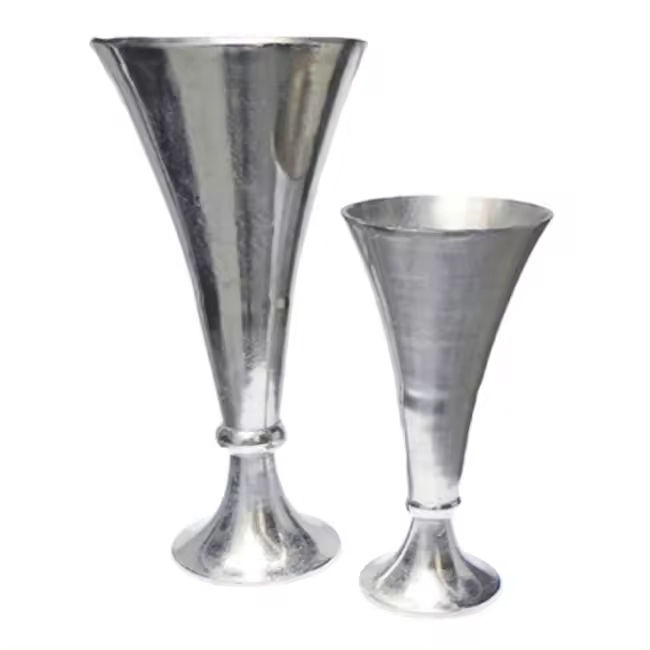 ชุดกระถางต้นไม้สองชั้นสีเงินแจกันดอกไม้ดีไซน์เรียบง่ายอุปกรณ์ตกแต่ง