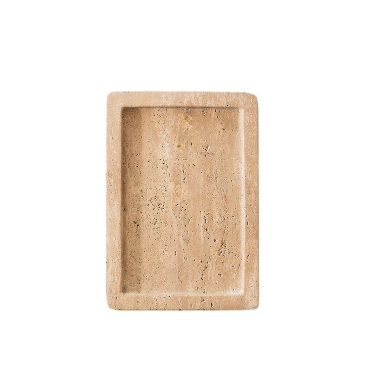 ถาดหินอ่อนทรงสี่เหลี่ยมผืนผ้าสีเบจขายดี ใช้สำหรับจัดระเบียบ เสิร์ฟ โชว์ และตกแต่งบ้าน
