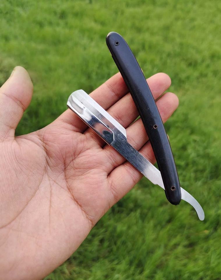 มีดโกนหนวดใบมีดขอบเดียวสำหรับร้านตัดผมทำจากสเตนเลสด้ามจับพลาสติกใบมีดเดี่ยว