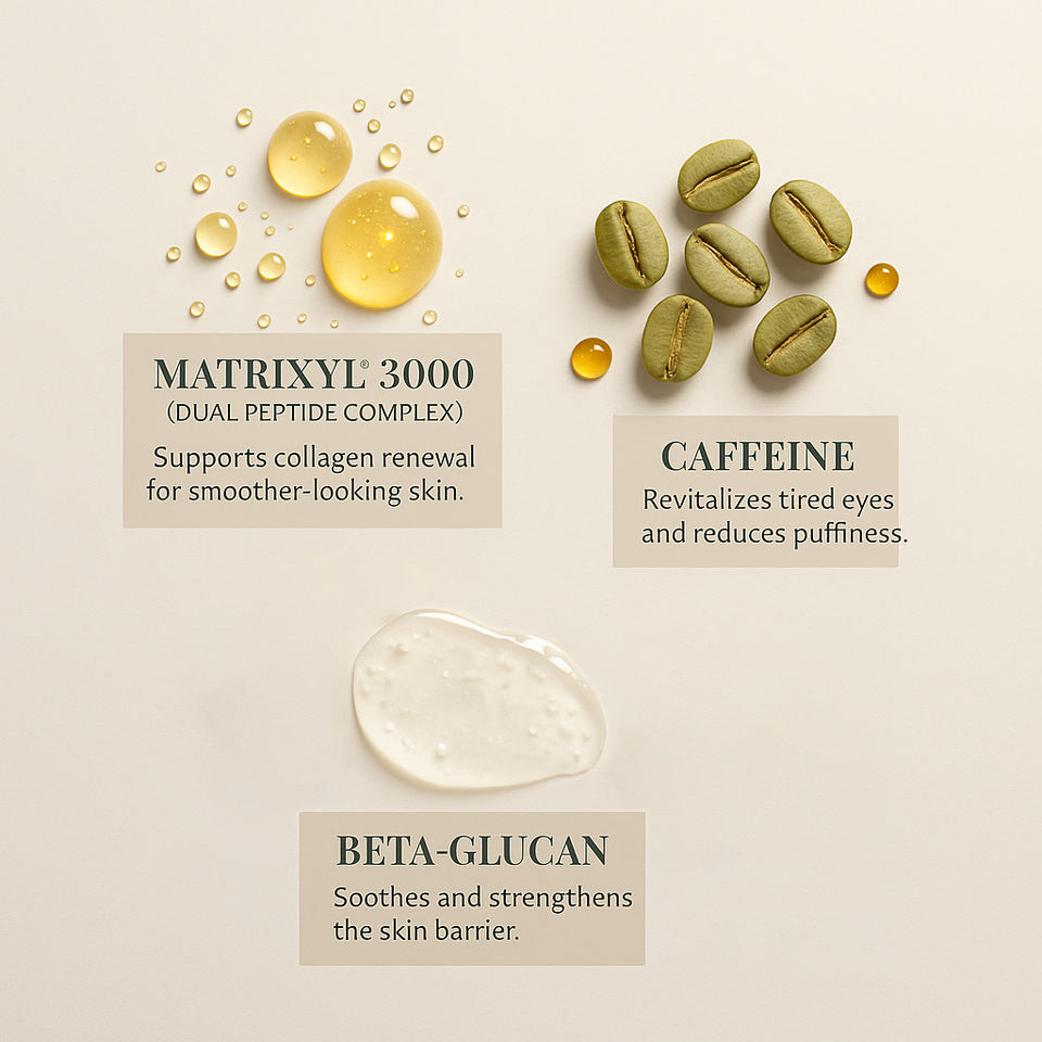 Matrixyl 3000 (Matrikine Signal Peptide), Caffeine, Beta-Glucan