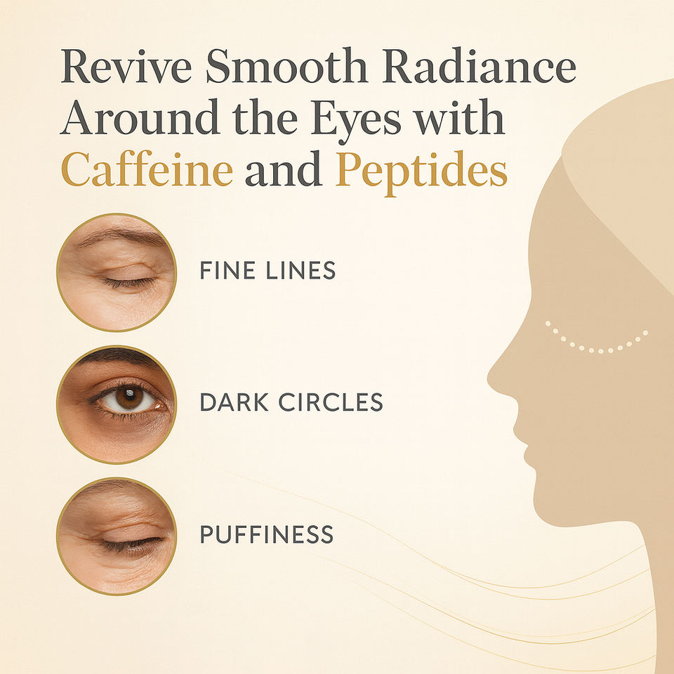 เซรั่มบำรุงรอบดวงตาสูตรขายดี ลดเลือนริ้วรอย ด้วยไฮยาลูรอนิก แอซิด สมุนไพร เมทริกซ์ิล 3000 คาเฟอีน เบต้า-กลูแคน และเปปไทด์คู่ ช่วยยกกระชับและเพิ่มความชุ่มชื้น