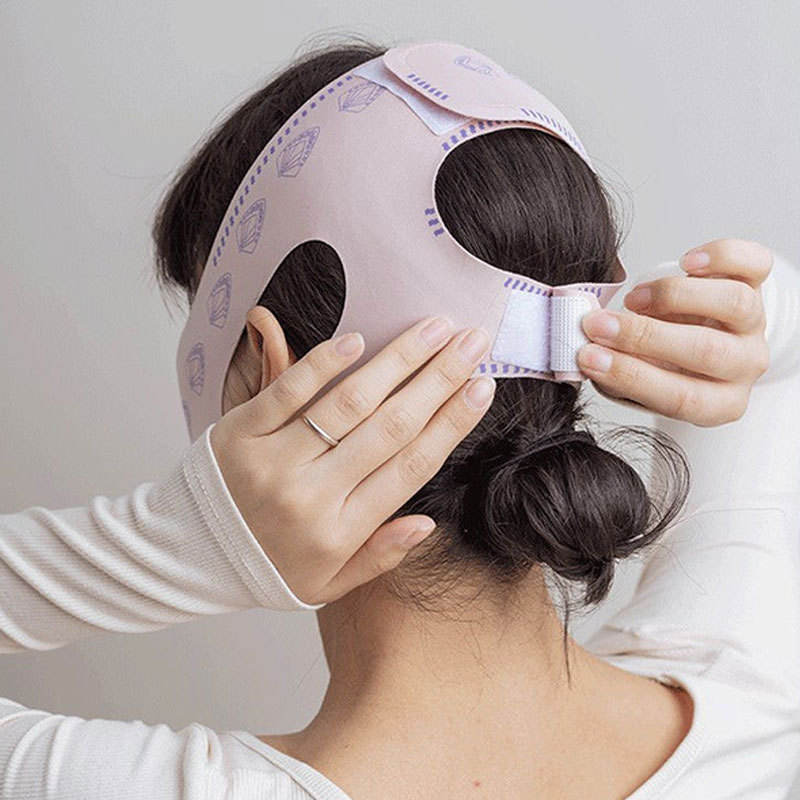 เข็มขัดกระชับสัดส่วนสายรัดใบหน้าแบบบางช่วยยกแก้มตัววีสายรัดหน้ากากลดคาง