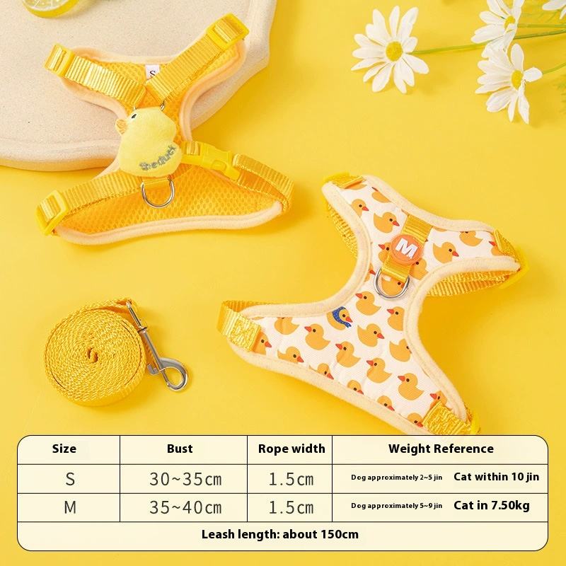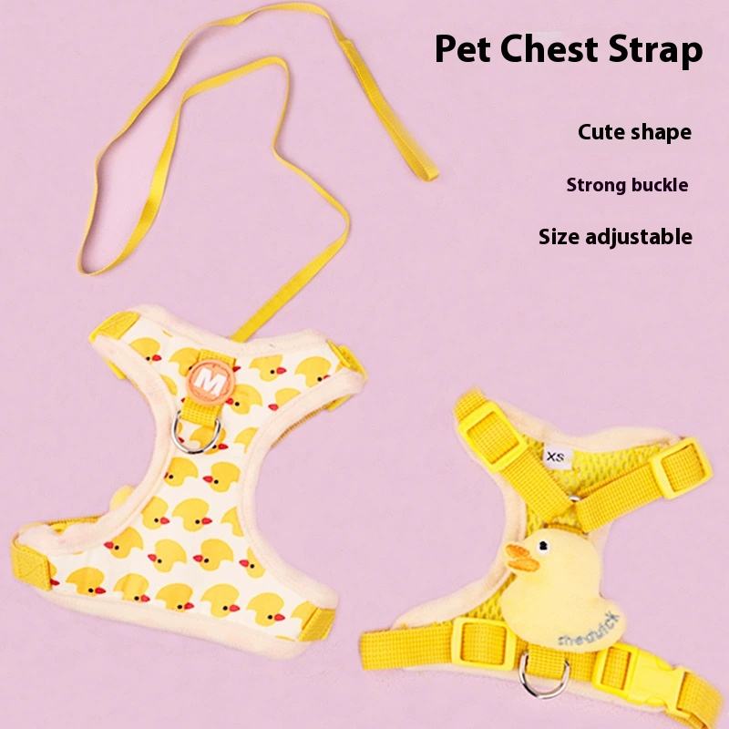 เชือกจูงสุนัขขนเป็ดสีเหลืองขนาดเล็กสำหรับสัตว์เลี้ยงสายจูงสุนัขน่ารักเชือกจูงสุนัขเดินกลางแจ้ง